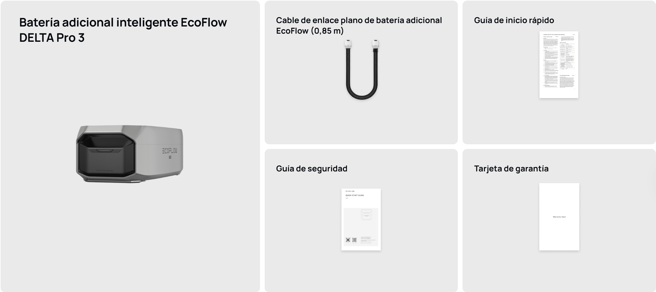 | Contenido de la caja | 1. Batería adicional inteligente EcoFlow DELTA Pro 3 |