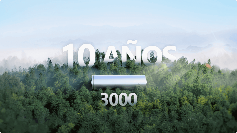 Hecho para durar 6 veces más: Obtén 10 años de uso diario hasta alcanzar el 80% de su capacidad original. Eso se debe a la química de su batería LFP que ofrece 3000 ciclos.