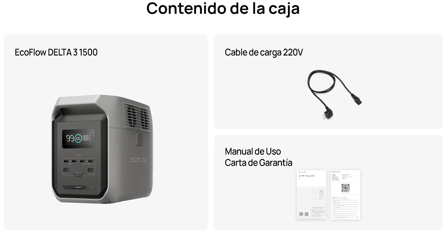 Contenido de la caja | Delta 3 1500 Cable AC 220v Manual/Garantía |