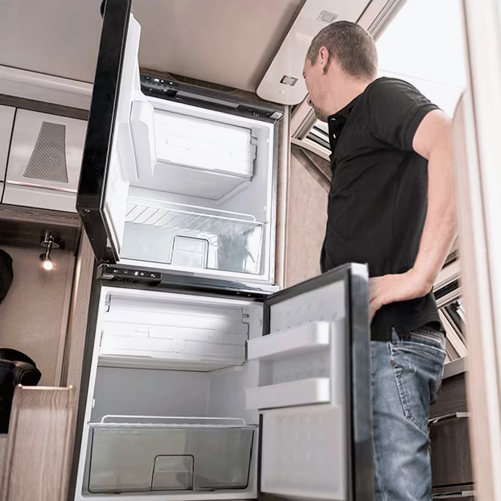 Este refrigerador a compresor de 12V será un complemento perfecto para su van o casa rodante. Su tecnología de bajo consumo permite un consumo medio de 12v a 18v por hora (1 a 1,5 amp). Cuenta con un termostato digital y un espacio de congelador independiente.