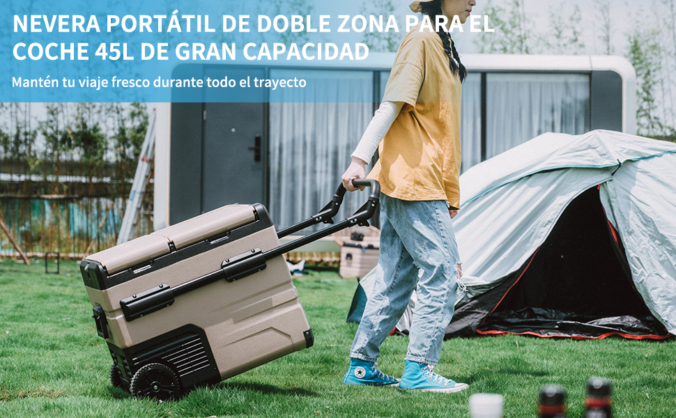 - ❆ FÁCIL DE USAR Y PORTÁTIL: Con 2 ruedas grandes y un asa para tirar, el refrigerador portátil se puede llevar a cualquier lugar. Los canastillos extraíbles son convenientes para que usted pueda almacenar o sacar la comida de manera rápida y limpia. La luz LED incorporada ayuda a encontrar la comida que desea en un ambiente tenue. El diseño con drenaje en su base, hace que sea más fácil de limpiar el congelador portátil.